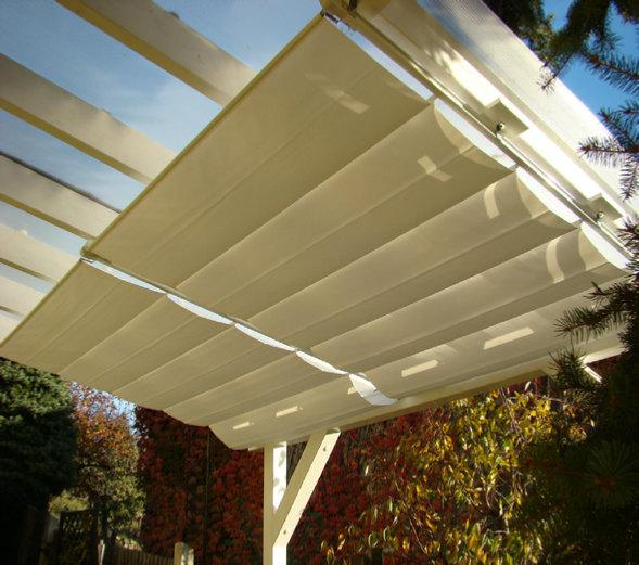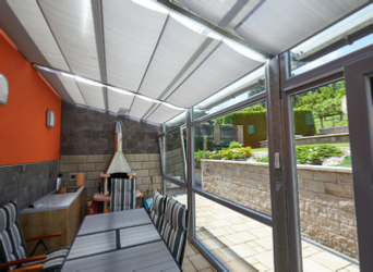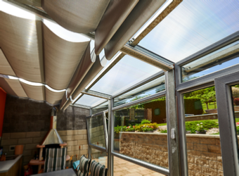 Kolejnicové zastínění světlíků a prosklených střech pergol nebo zimních zahrad.