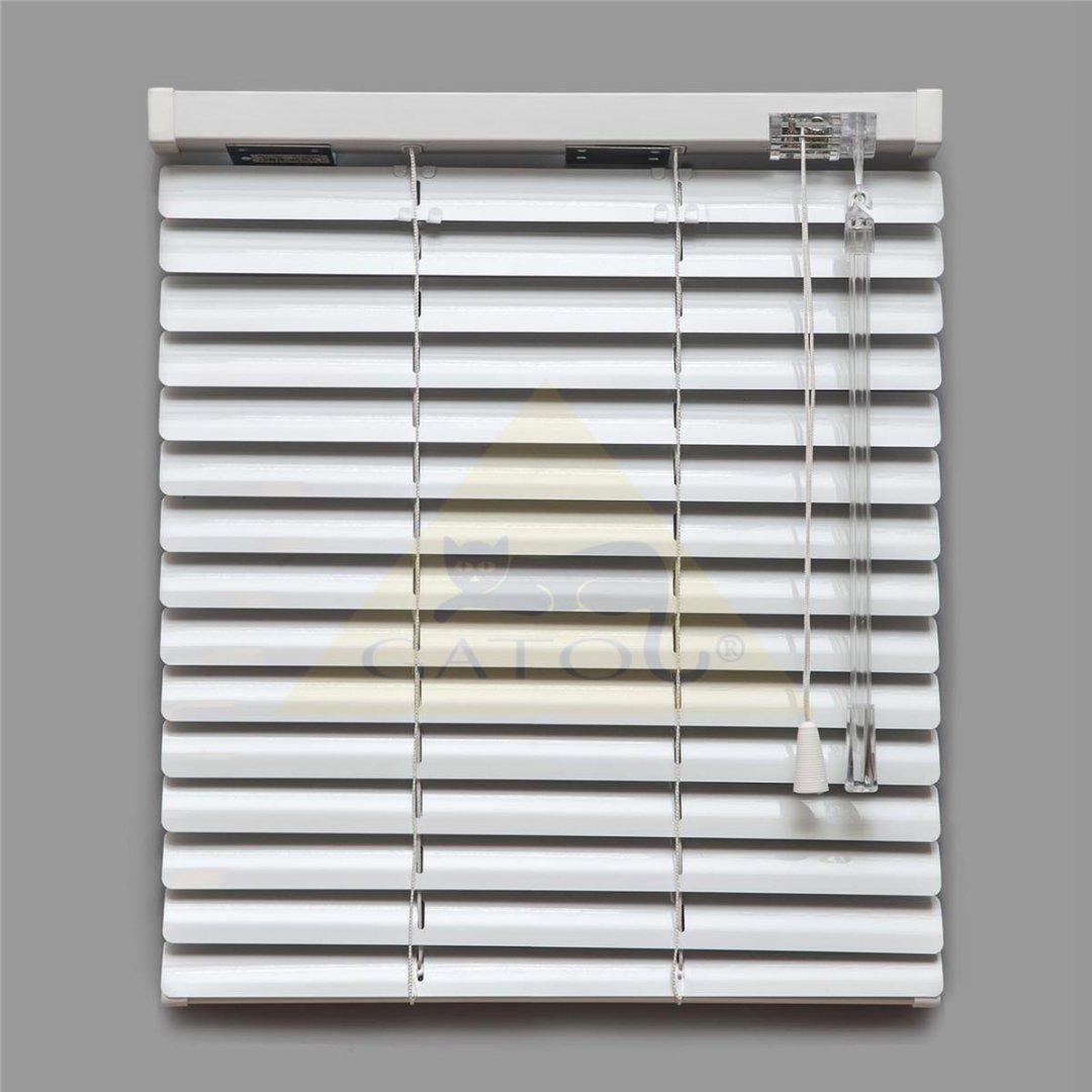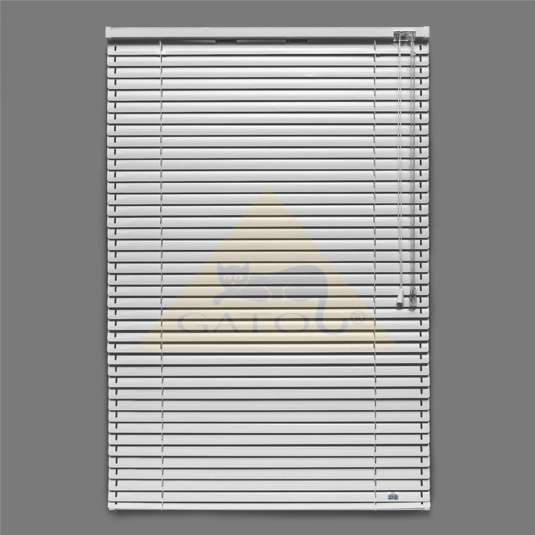 Horizontální žaluzie typ: I. Ovládání čelně plastovou tyčkou a šňůrkou. Může být i v celostínícím nebo domykatelném provedení. Umístění volně visící, na okně, ve špaletě, stěna nebo strop.