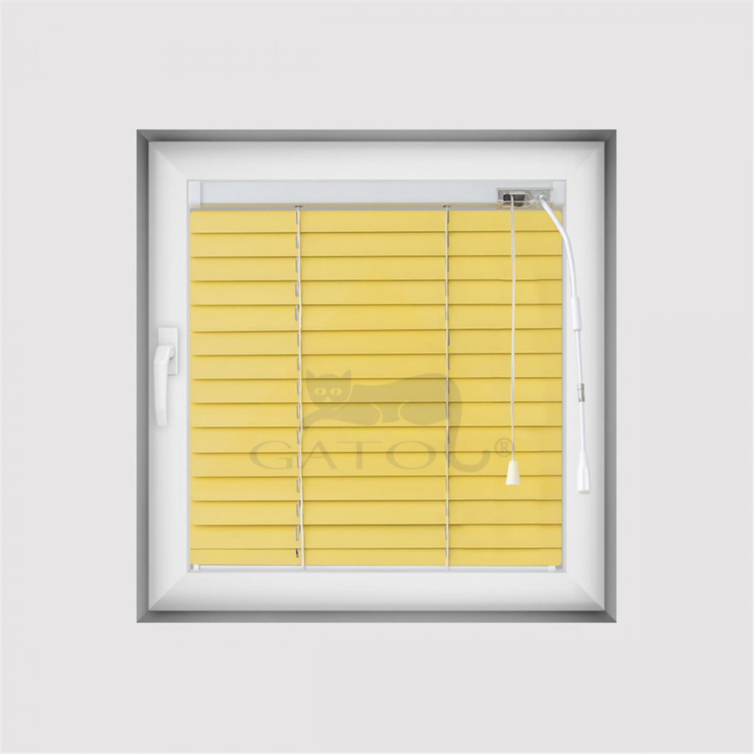 Umístění na rám okna. Ovládání místo plastovou, kovovou tyčkou a šňůrkou. Kovová tyčka se uchycuje do držáku na rám okna.