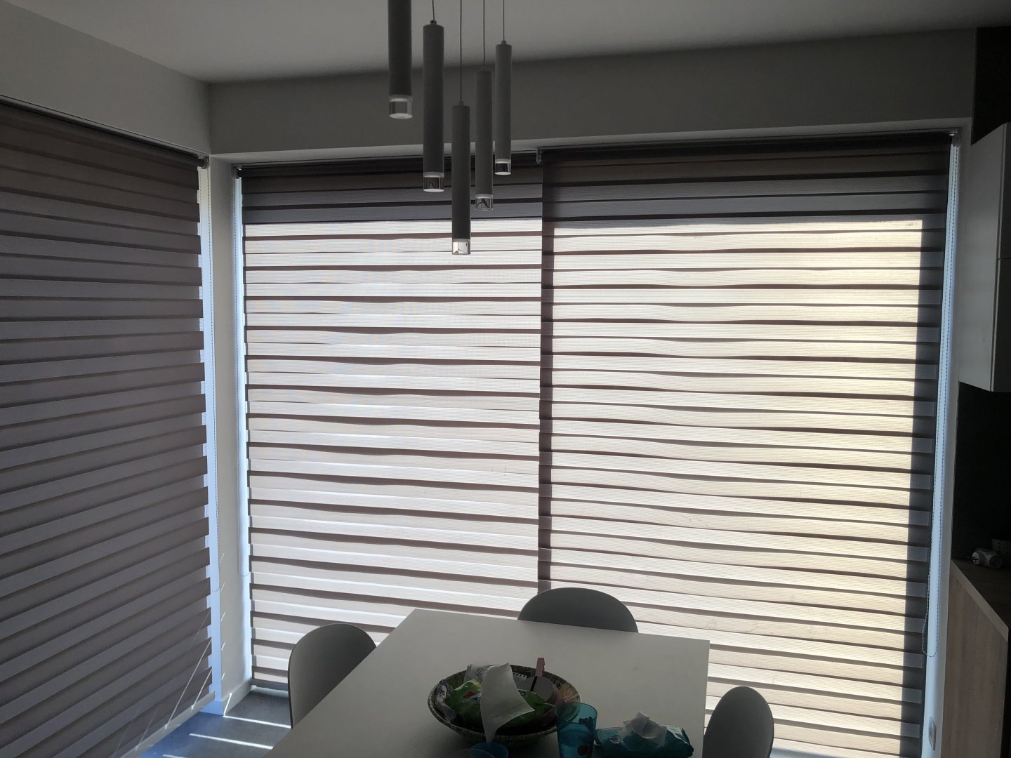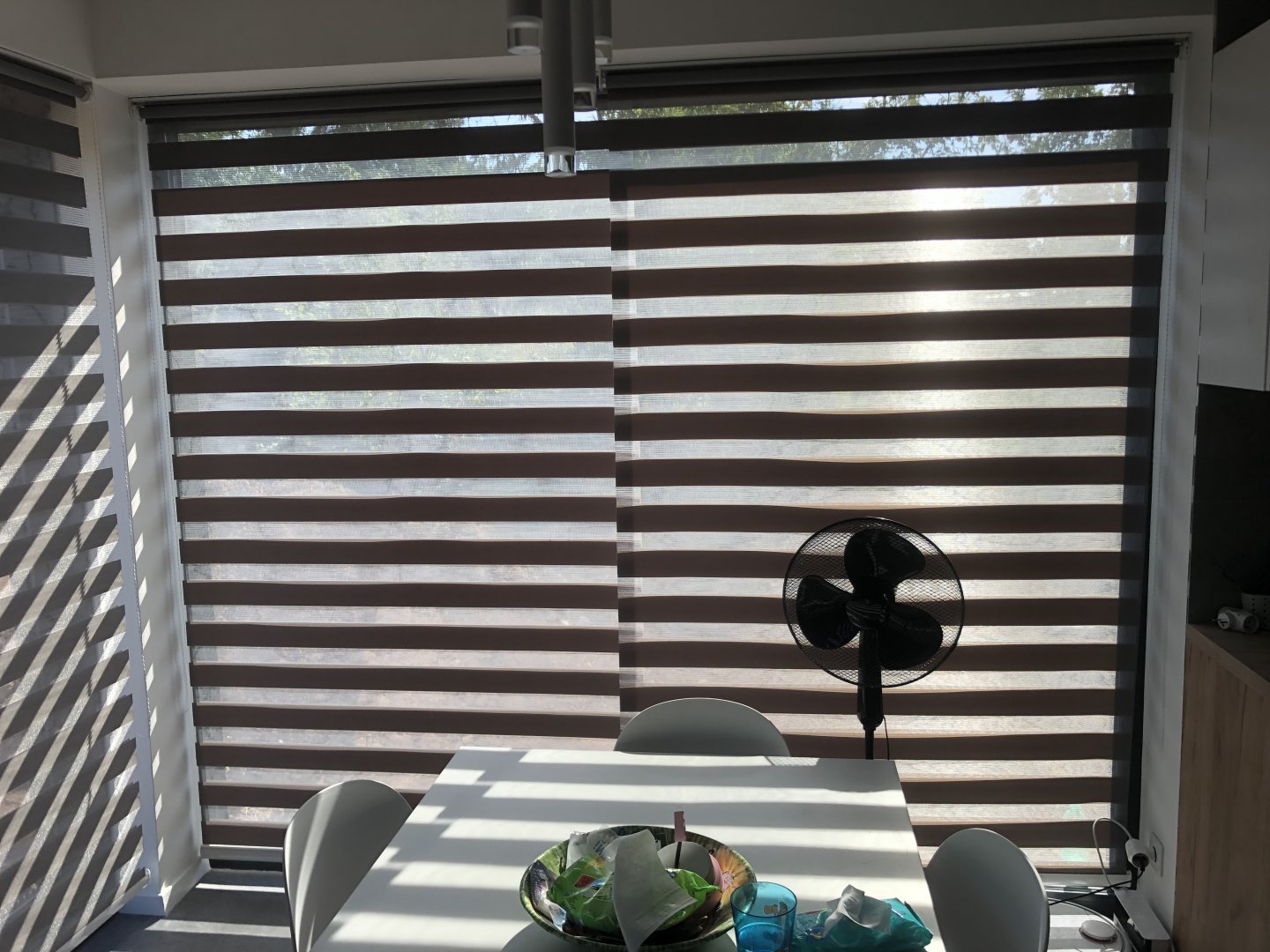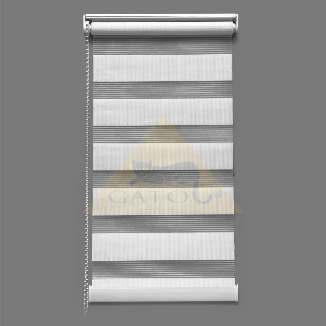 V současné době je velmi oblíbený výrobek, obecně známý pod názvem Den a noc. Používá se ale i název Duo roleta nebo typ Zebra. A jak vlastně funguje? Klasická roleta má jednoduchou látku, kterou stahujeme za šňůrku, uvnitř toče je pružina nebo řetízkem, uvnitř toče je řetízkový mechanismus. Látka rolety Den a noc je ale dvojitá se střídajícími se pruhy. Jeden pruh je více průsvitný, druhý méně. Řetízkový mechanismus umožňuje nastavení pruhů tak, aby pruhy byly v různých pozicích proti sobě, tz. roleta více zastínila nebo méně. Můžete tak pohodlně regulovat stínění přes den a v noci si zajistit soukromí.