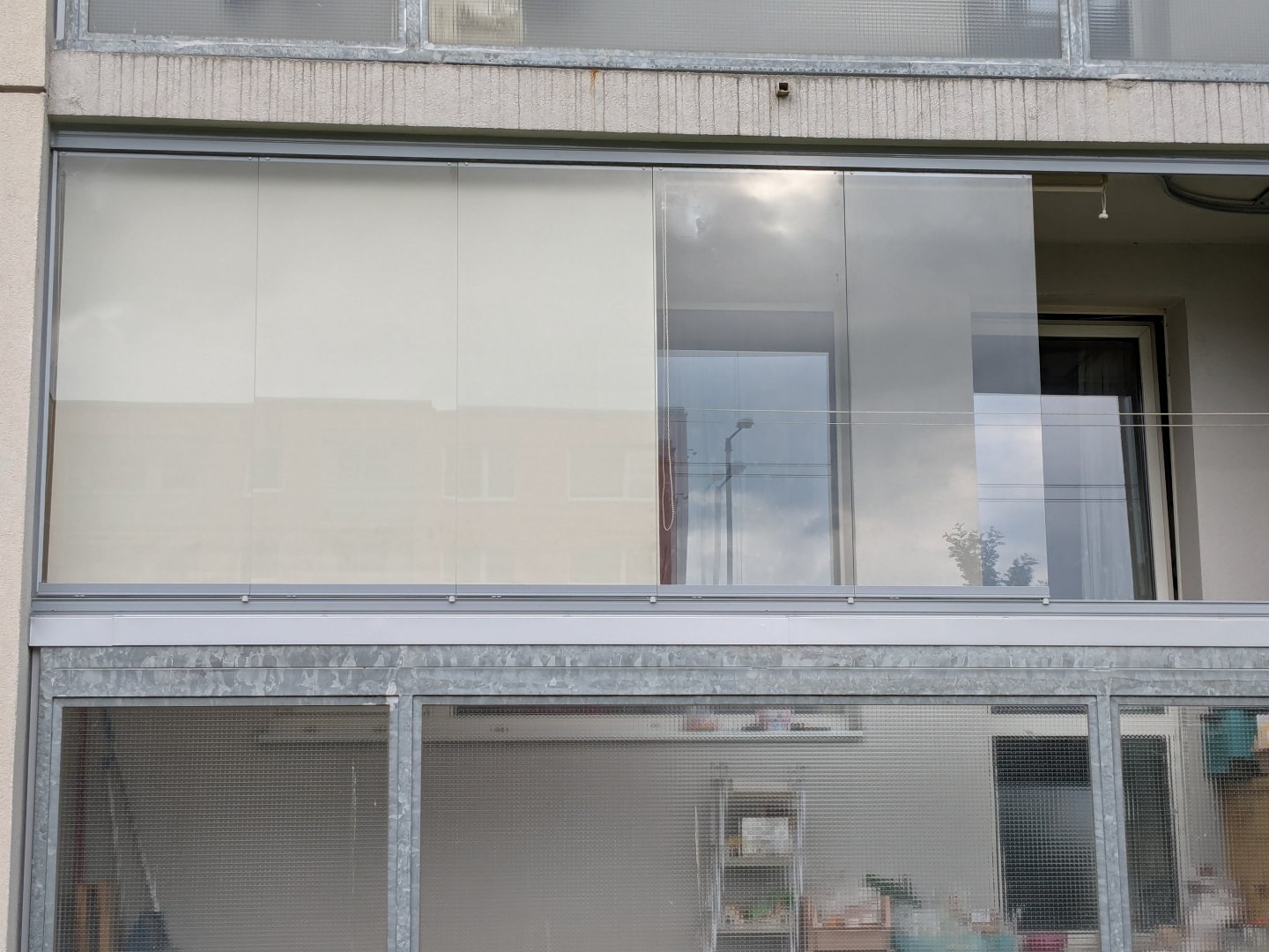 Nainstalujeme balkonovou venkovní roletu se sreenovou látkou, která rozptýlí světlo, ale zcela nezatemní.
