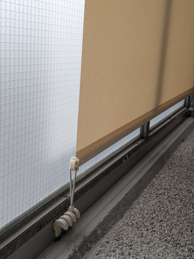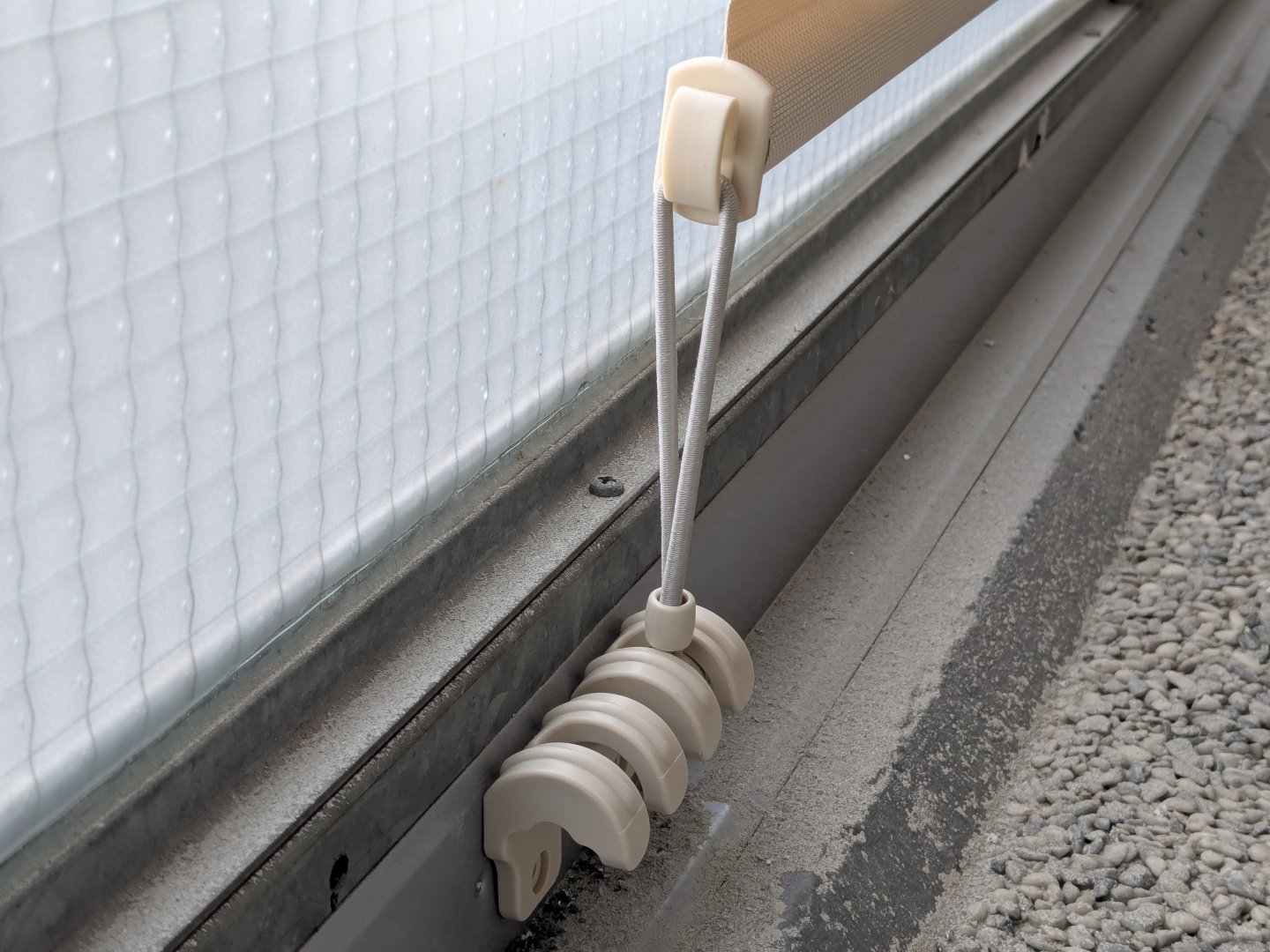 Spodní úchyty jsoo pružné a pofukující vítr roletě nevadí.