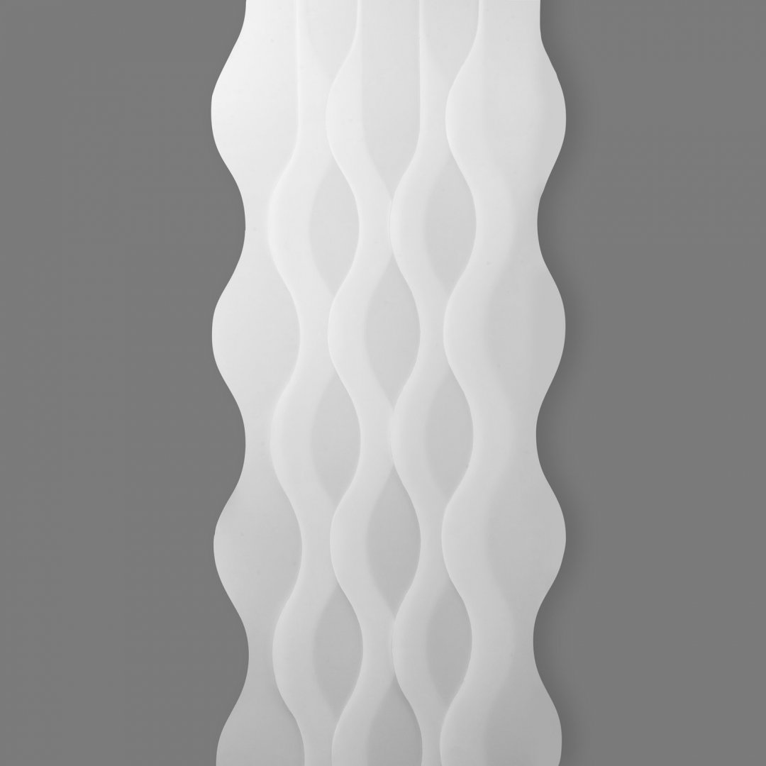 Tvarovaná vertikální látka. Nepůsobí kancelářským dojmem, je určena do obývacích prostor.